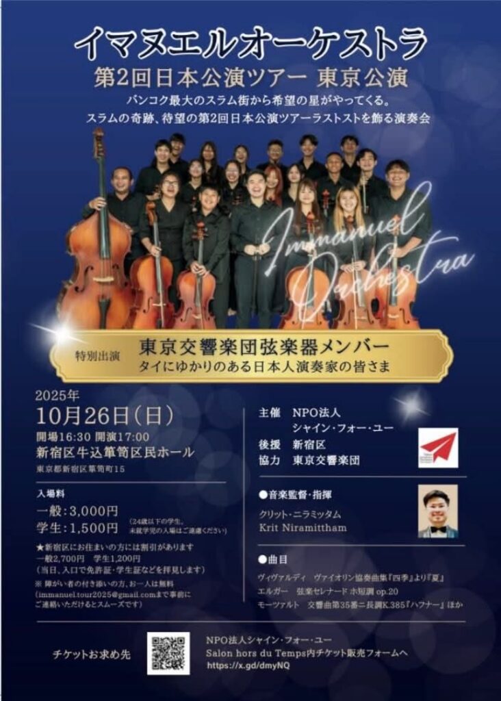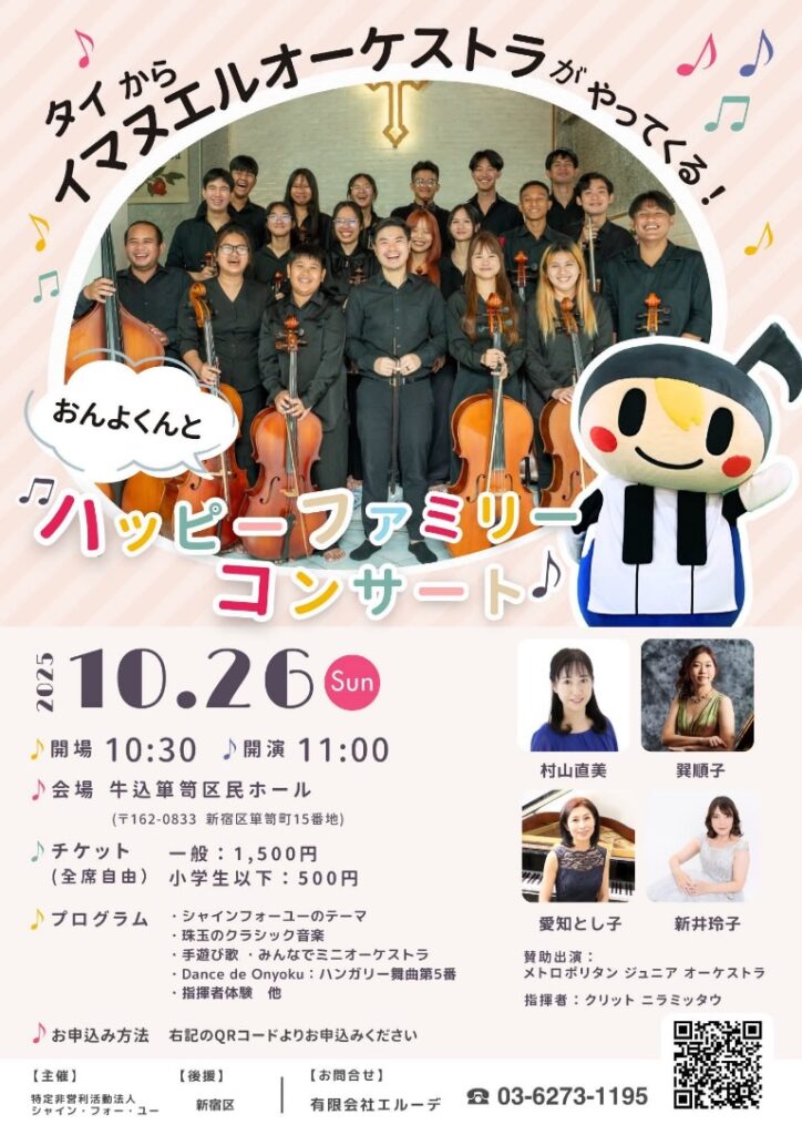 ピアノの直美先生が、以前6年もの長きにわたりタイに在住していたご縁から、タイのユースオーケストラの応援をしております。今回は東京交響楽団との共演、直美先生ご本人も、進行役としてステージに参加いたします。お時間のある方はご家族やご友人お誘い合わせの上ぜひ参加してみてください。